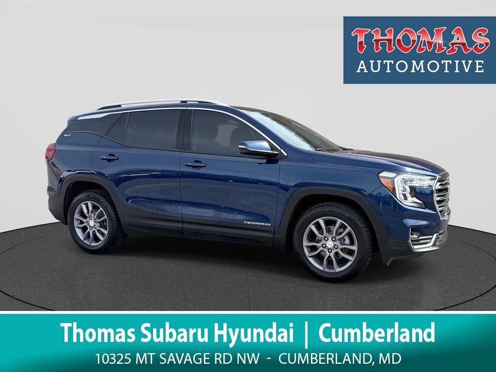 Experience confident driving in this 2023 GMC Terrain SLT AWD, now available in Cumberland, MD. This fuel-efficient 4-cylinder, 1.5L gasoline crossover pairs responsive performance with intelligent all-wheel drive for enhanced traction and stability in varied conditions. The SLT trim delivers premium comfort and tech, making daily commutes and weekend getaways more enjoyable. Inside, you'll find modern conveniences including Hands-Free Bluetooth for seamless phone and audio connectivity, Android Auto for intuitive smartphone integration, and a Back-Up Camera to improve parking confidence. The Heated Steering Wheel adds a touch of luxury on chilly mornings while Adaptive Cruise Control reduces driver fatigue on longer trips by maintaining a safe, set following distance. This GMC Terrain balances capability and efficiency with a refined interior featuring supportive seating, smart storage solutions, and user-friendly controls. Safety-focused features and advanced driver assists contribute to peace of mind on every journey. Whether navigating mountain roads or city streets around Cumberland, this AWD GMC Terrain provides stability and control. Priced competitively, this 2023 GMC Terrain SLT AWD is offered at the best price in the areaâ"an excellent value for buyers seeking a well-equipped, dependable crossover. Schedule a test drive in Cumberland, MD, today to experience the combination of performance, comfort, and technology that makes this GMC Terrain an outstanding choice.